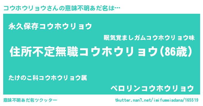 | 胡散臭い通販商品みたいなあだ名 | 『世界中を虜にした世界で10本だけ現存している希少なブランデー…その名も「コウホウリョウ」』 |