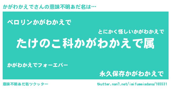 | 料理風あだ名 | 『かがわかえでごはん』 |