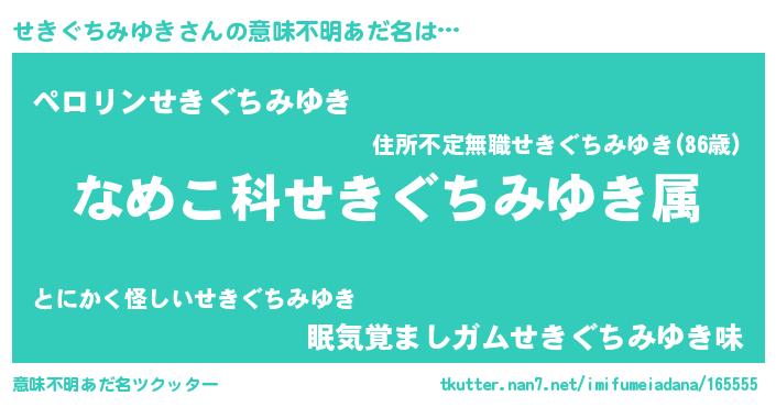 | 男性向けラノベタイトル風あだ名 | 『転生したらせきぐちみゆきだった件』 |
