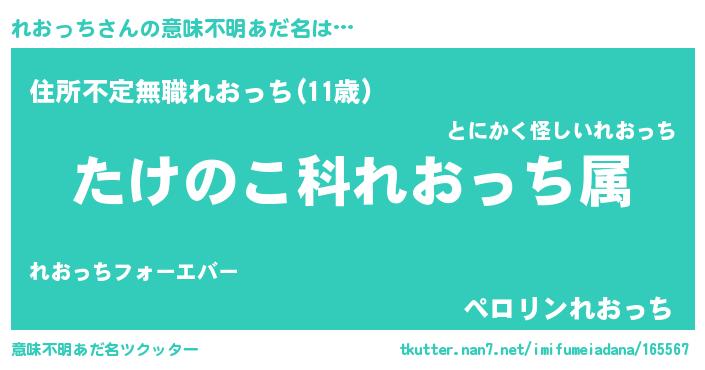 | 男性向けラノベタイトル風あだ名 | 『転生したられおっちだった件』 |