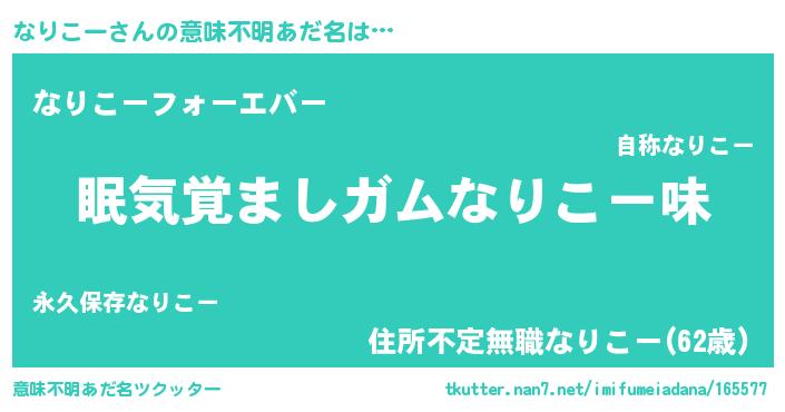 | ファンタジー風あだ名 | 『クインナット』『エターナルナリコーー』 |