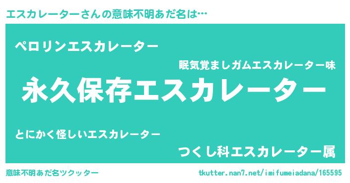 | 男性向けラノベタイトル風あだ名 | 『誰もが恐れるあのエスカレーターが、ぼくの専属メイドになるようです。』 |