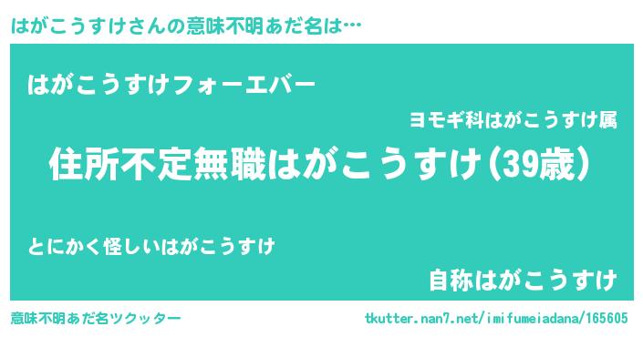 | 欧米人風あだ名 | 『アンジェラ・はがこうすけ』 |