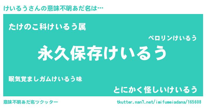 | 男性向けラノベタイトル風あだ名 | 『けいるうという概念が存在しない退屈な世界 』 |