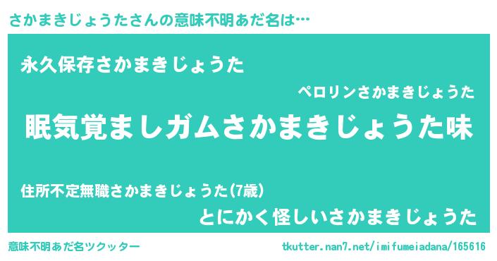 | 男性向けラノベタイトル風あだ名 | 『ノーゲーム・ノーサカマキジョウタ』 |