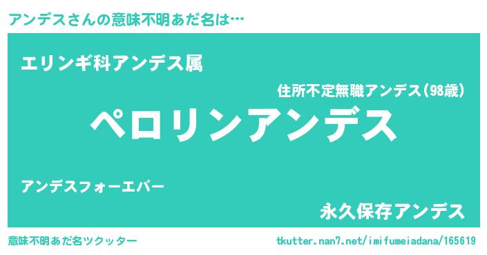 | 男性向けラノベタイトル風あだ名 | 『アンデスの憂鬱』『アンデススレイヤー』 |