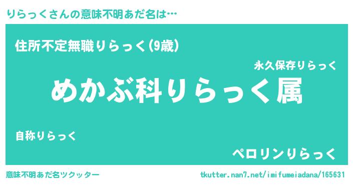 | 男性向けラノベタイトル風あだ名 | 『はたらくりらっくさま!』 |
