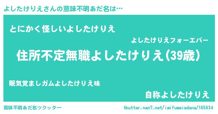 | ポケモン風あだ名 | 『ヨーシイ』『ヒヨシタケリエ』 |