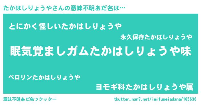 | 女子向けラノベタイトル風あだ名 | 『たかはしりょうや恋絵巻』 |