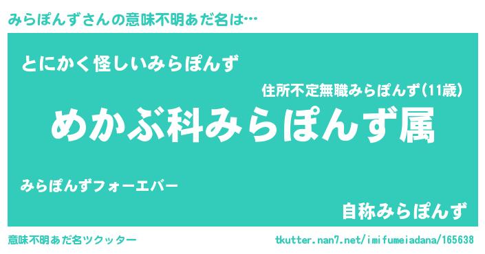 | 胡散臭い通販商品みたいなあだ名 | 『信頼と実績のサプリメント…その名も「みらぽんず」』 |
