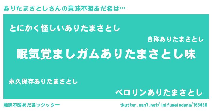 | 肩書あだ名 | 『ありたまさとし助手』 |
