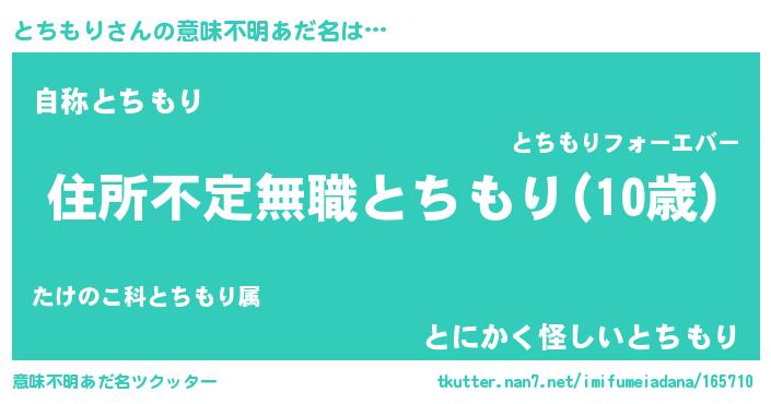 | ヒーロー風カッコイイあだ名 | 『仮面トチダー』『究極戦士トチモリ』 |
