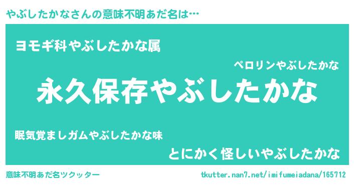 | ヘコむあだ名 | 『やぶしたかな(爆)』『やぶを』 |