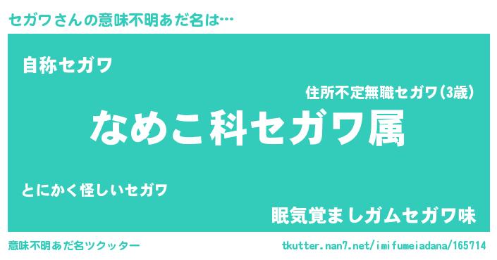 | 肩書あだ名 | 『セガワ上級大将』『セガワ総統』 |