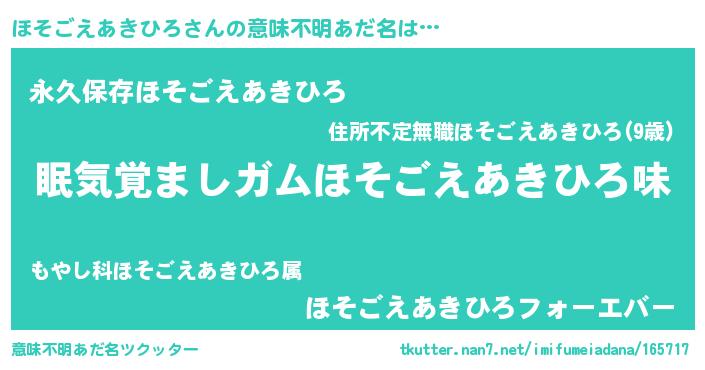 | 欧米人風あだ名 | 『ほそごえあきひろ・ステッグマイヤー』 |