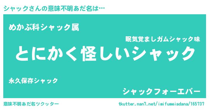 | ヒーロー風カッコイイあだ名 | 『炎刃騎士シャ』『ウルトラシャックマン』 |