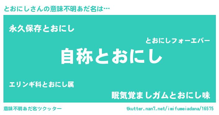 | 女子向けラノベタイトル風あだ名 | 『とおにしなんてお断りですっ。』 |