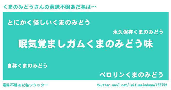 | 男性向けラノベタイトル風あだ名 | 『おまえをオタクにしてやるから、俺をくまのみどうにしてくれ! 』 |