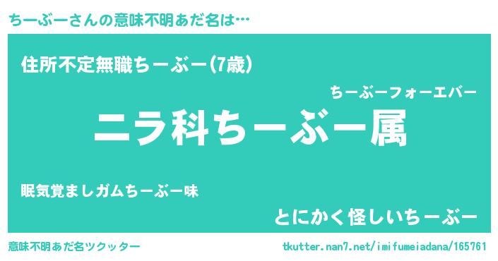 | 胡散臭い通販商品みたいなあだ名 | 『あなたにだけ特別に提供する世界で10本だけ現存している希少なブランデー…その名も「ちーぶー」』 |