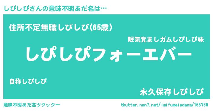 | 女子向けラノベタイトル風あだ名 | 『しぴしぴの雑貨屋さん』 |