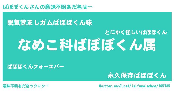 | 男性向けラノベタイトル風あだ名 | 『転生したらばぼぼくんだった件』 |