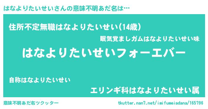 | ポケモン風あだ名 | 『ハナヨダネ』『ハーナイ』 |