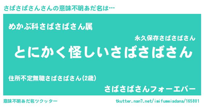 | 男性向けラノベタイトル風あだ名 | 『さばさばさんの嫁は女の子じゃないと思った?』 |