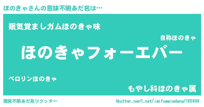 | 女子向けラノベタイトル風あだ名 | 『ほのきゃの雑貨屋さん』『闇のほのきゃ』 |