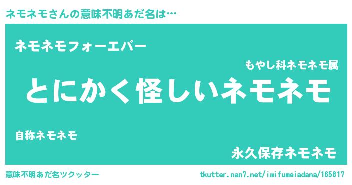 | ヘコむあだ名 | 『ネモぷりん』『豆乳』『ネモにゅー』 |