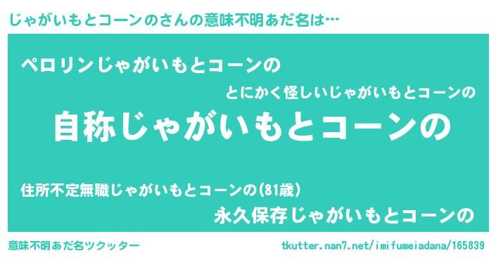 | ヒーロー風カッコイイあだ名 | 『究極戦士ジャガイモトコーンノ』 |