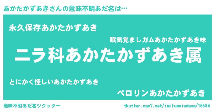 | ヘコむあだ名 | 『あかたかずあき(遠い目)』『あかっふぃ~』 |
