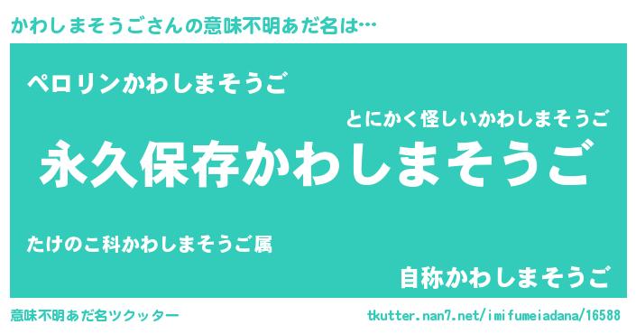 | ヘコむあだ名 | 『かわしまそうご(小並感)』『かわにゅー』 |