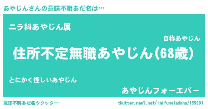 | 欧米人風あだ名 | 『あやじん・ステッグマイヤー』 |