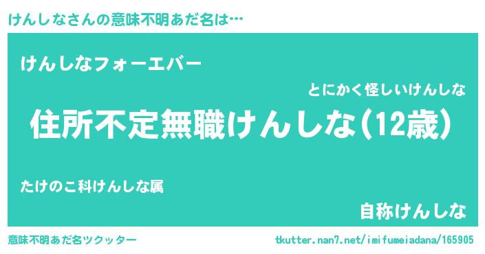 | ヘコむあだ名 | 『豆乳』『けん太郎』『けんしな(笑)』 |