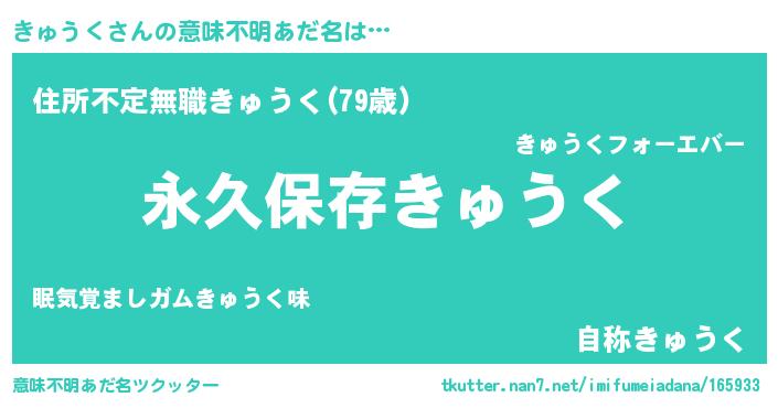 | 胡散臭い通販商品みたいなあだ名 | 『絶対に幸福をもたらす健康食品…その名も「きゅうく」』 |