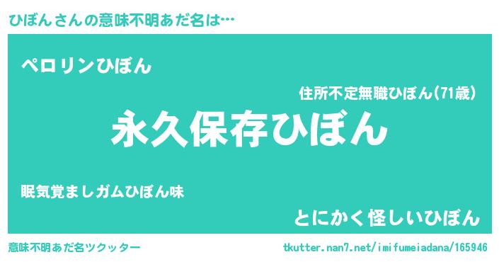 | 胡散臭い通販商品みたいなあだ名 | 『来世でも幸せになれる水素水…その名も「ひぼん」』 |