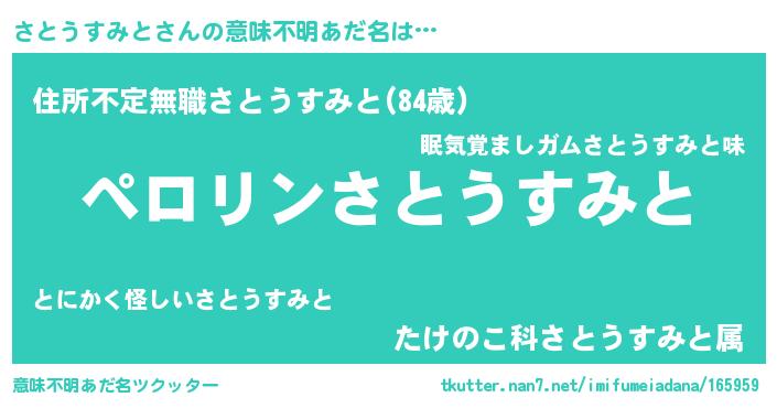 | 男性向けラノベタイトル風あだ名 | 『うちのさとうすみとが世界を掌握している!』 |