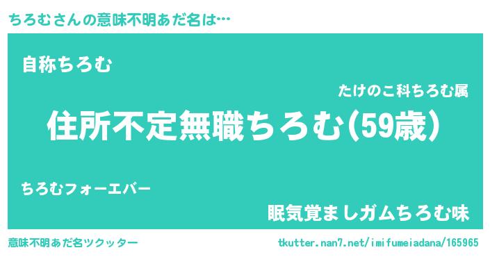 | ヘコむあだ名 | 『豆乳』『ちろむ(苦笑)』『ちろお』 |