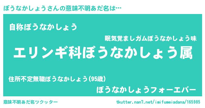 | 料理風あだ名 | 『ぼうなかしょうごはん』 |