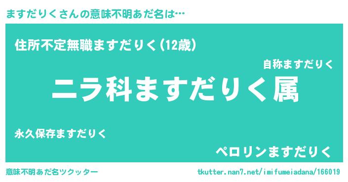 | ヘコむあだ名 | 『ますふぇ~』『ますだりく(笑)』 |