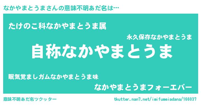 | 肩書あだ名 | 『なかやまとうま閣下』 |
