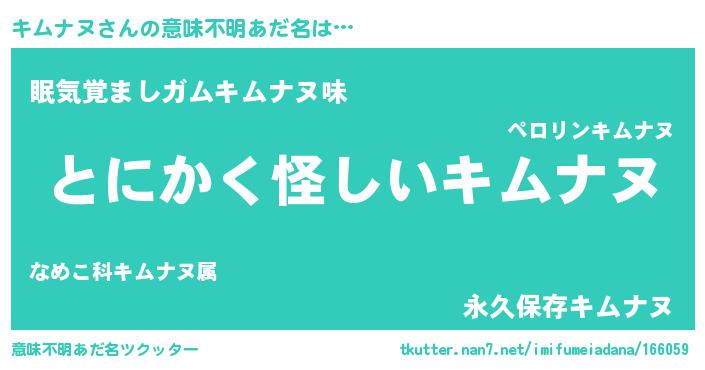 | 女子向けラノベタイトル風あだ名 | 『キムナヌの卵を拾いまして』 |