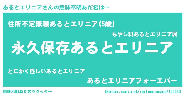 | 胡散臭い通販商品みたいなあだ名 | 『来世でも幸せになれる健康食品…その名も「あるとエリニア」』 |