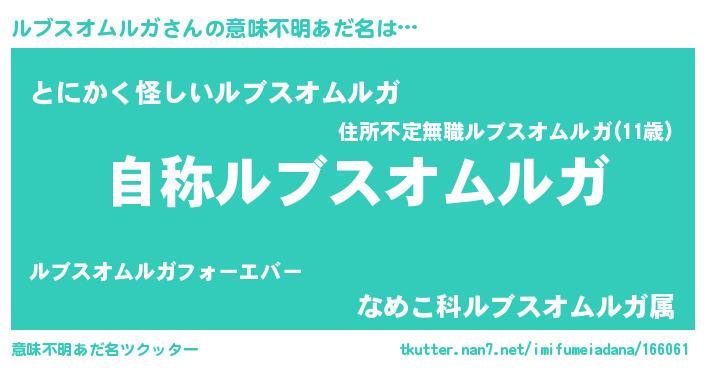| ポケモン風あだ名 | 『ルブセウス』『ヒルブスオムルガ』 |