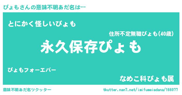 | 胡散臭い通販商品みたいなあだ名 | 『来世でも幸せになれる健康食品…その名も「ぴょも」』 |