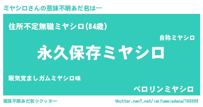 | 胡散臭い通販商品みたいなあだ名 | 『絶対に幸福をもたらす健康食品…その名も「ミヤシロ」』 |