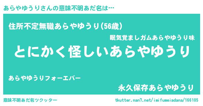 | ヘコむあだ名 | 『あらぷりん』『あらやゆうり(爆)』 |