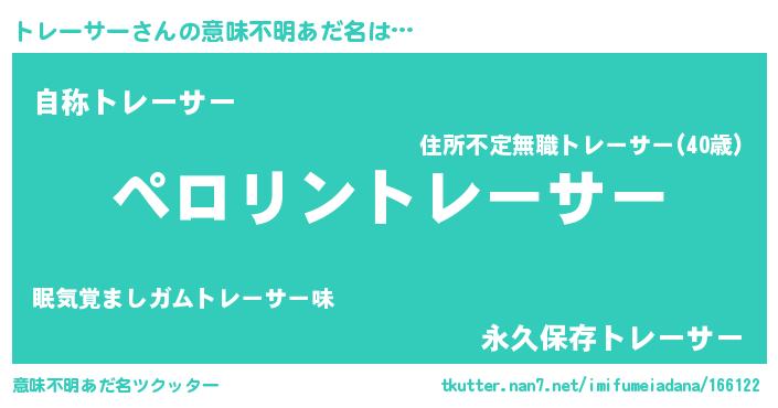 | ヘコむあだ名 | 『トレにゅー』『トレーサー(爆)』 |