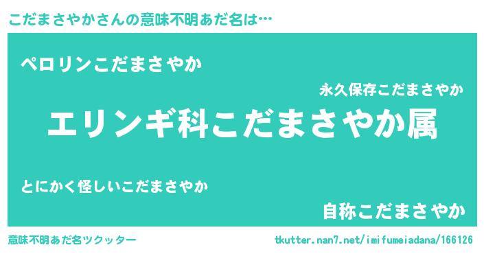 | 料理風あだ名 | 『こだまさやかごはん』 |