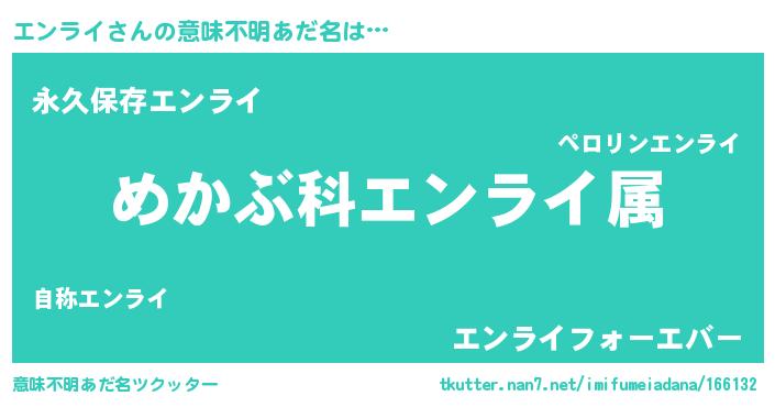 | ヘコむあだ名 | 『エンライ(爆)』『つくし』『エンお』 |